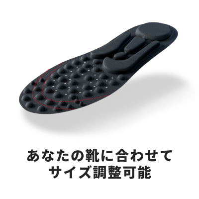 突起部分に合わせてカットするだけで、あなたの靴の大きさにあったサイズに。いつもの靴で使用できます。