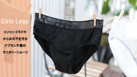 【Girls Leap】は、学校で生理用品を出すコソコソ・ドキドキから女の子を守りたいそんな思いからできた新しいサニタリーショーツです。使い捨て生理用品から“Leap”(飛躍)して、「サステナブルな新しい生理習慣へ」を目指す商品です。