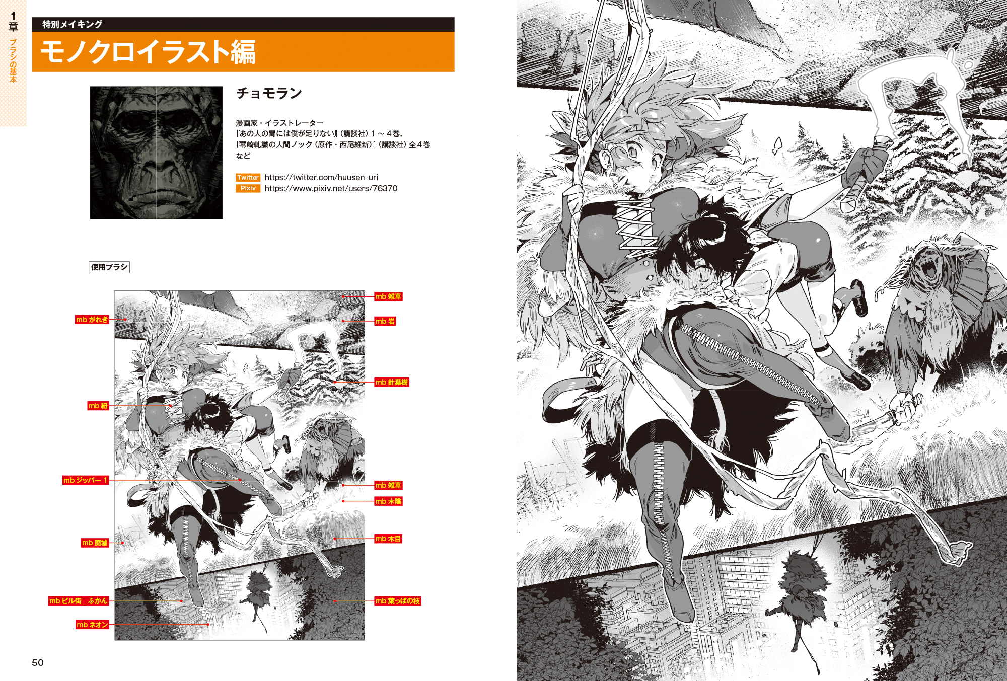 ●人気マンガ家による、ブラシの使用例も掲載!