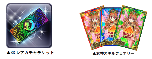 「ひたいのアレ+女神スキルフェアリー各属性1枚ずつ」「覚醒素材セット(火属性)全種1枚ずつ」