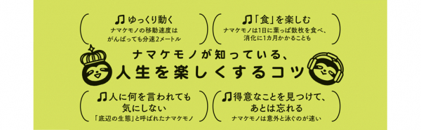 ナマケモノはいつも肩の力を抜いて木にぶら下がっている。他人の目なんか気にしない。上司に嫌みを言われたとか、冷蔵庫に取っておいたプリンを誰に食べられたとか、そんな小さいことも気にしない。ただのんびり生きて、死ぬときには死ぬ。それがモットーだ。(本書より抜粋)