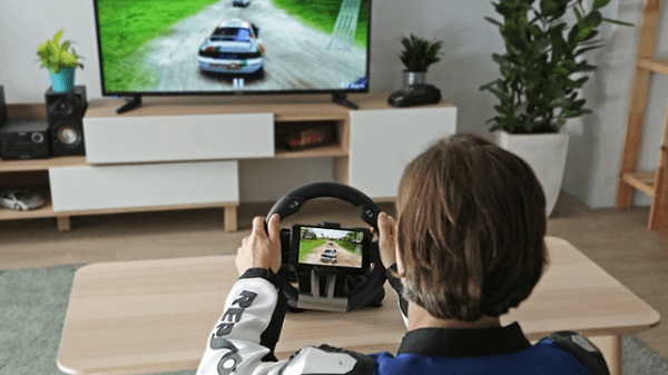 ゲーム機だけでなく、スマホのレースゲームにも対応、一台で完結!