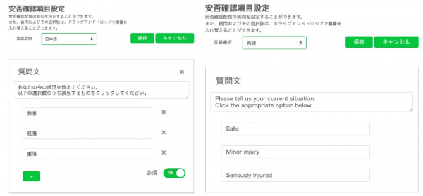 それに伴い、企業が採用する従業員も多国籍化していることに鑑み、安否確認を日本語に加え英語、韓国語、中国語(簡体字/繁体字)の3ヶ国語に対応することにいたしました。
