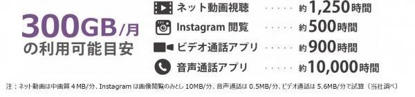 (1) データ大容量の300GB/月(※1)