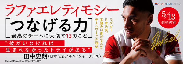 株式会社ハーパーコリンズ・ジャパン(本社:東京都千代田区、代表取締役:鈴木幸辰)は、ラグビー日本代表選手、ラファエレ ティモシーによる初の自著『つなげる力 最高のチームに大切な13のこと』を2020年5月13日に発売することを決定いたしましたのでここにお知らせいたします。