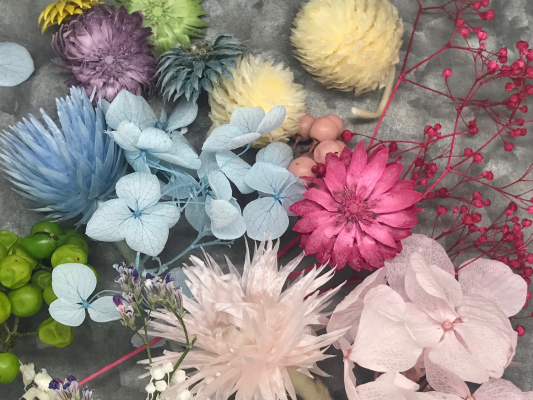 花材は春をイメージし、多彩で鮮やかなものを揃えました。