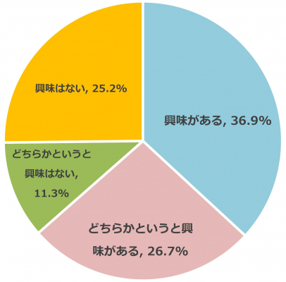 次に、副業もしくはフリーランスに興味があるか質問したところ、63.6%が「興味がある」(興味がある:36.9%、どちらかというと興味がある:26.7%)と回答しました。