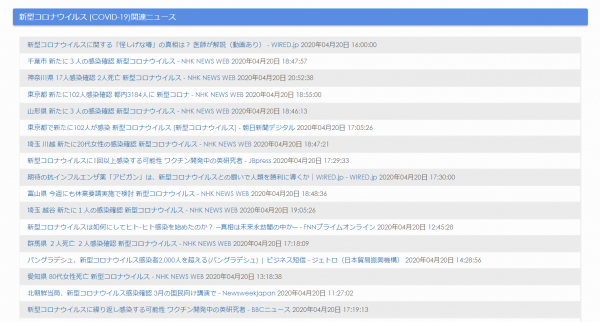 ~インターネット上にある新型コロナウイルスに関連するニュースをページ上に掲載。