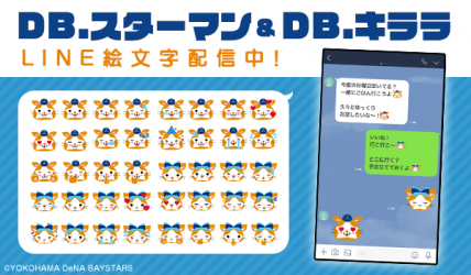 「横浜DeNAベイスターズ」の大人気マスコットキャラクター「DB.スターマン」と、「DB.キララ」が株式会社インクルーズのアカウントより、LINE Creators MarketのLINE絵文字として初登場!