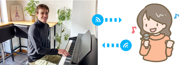 本サービスは、新型コロナウイルスの影響により全国的にカラオケ店が閉店している現状を鑑み、自宅にて気軽にカラオケが楽しめるようにというコンセプトの元、始めたサービスです。さらに、従来より「オンライン英語でピアノ」サービスを提供している当社の特徴を活かし、「ピアノの生伴奏付き」「洋楽の発音、発声レッスン付き」カラオケとなっています。