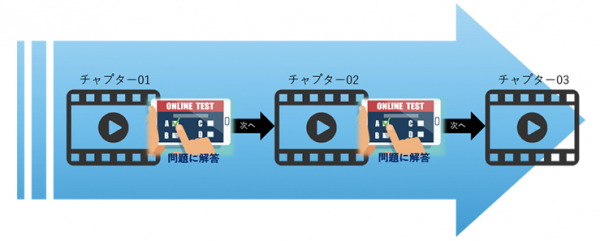 (6) チャプター機能により、動画視聴後のアンケート回答者のみが次の動画に進めます。