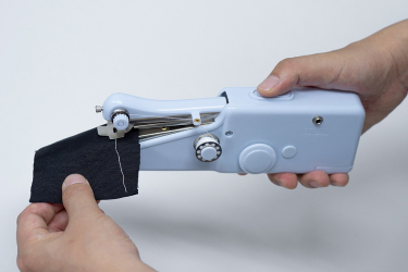 ホッチキスのように片手で持ち、親指でスイッチを押すだけで布が縫える超小型電動ミシンなので、初心者でも簡単にご使用いただけます。