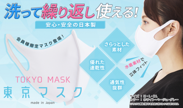 補正下着メーカー【モンステラ(株式会社F1research)】と百貨店から紳士婦人服の補修・加工を請け負う【株式会社コッコ パッソ】が洗えるマスク「東京マスク」を協業で開発。5月14日よりお求めやすい価格への変更・追加販売が決定。お客様のご要望にお応えして少し大きめの「XLサイズ」が登場。法人向け販売の受付も開始。