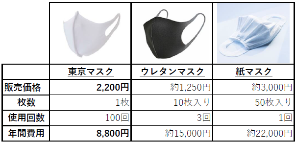 「東京マスク」「ウレタンマスク」「紙マスク」の比較