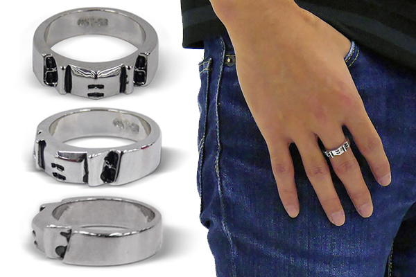 TVアニメ『機動戦士ガンダム』よりモビルスーツ「ガンダム」と「ザク」それぞれデザインした合金製のリング2種は、一見するとメカニカルなデザインリングに見えて、よく見るとそれぞれガンダムフェイスとザクのモノアイをモチーフにしたものだとわかります。