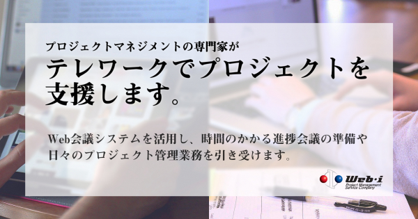 プロジェクトマネジメントおよび計画管理に関するコンサルティングとソフトウェア開発を手掛ける株式会社ウェッブアイ(代表:森川勇治 本社:東京都江東区)は2020年5月22日(金)、テレワークでのプロジェクト管理業務に対応する、Web会議システムなどを活用したオンラインPMO支援サービス の提供を開始しました。