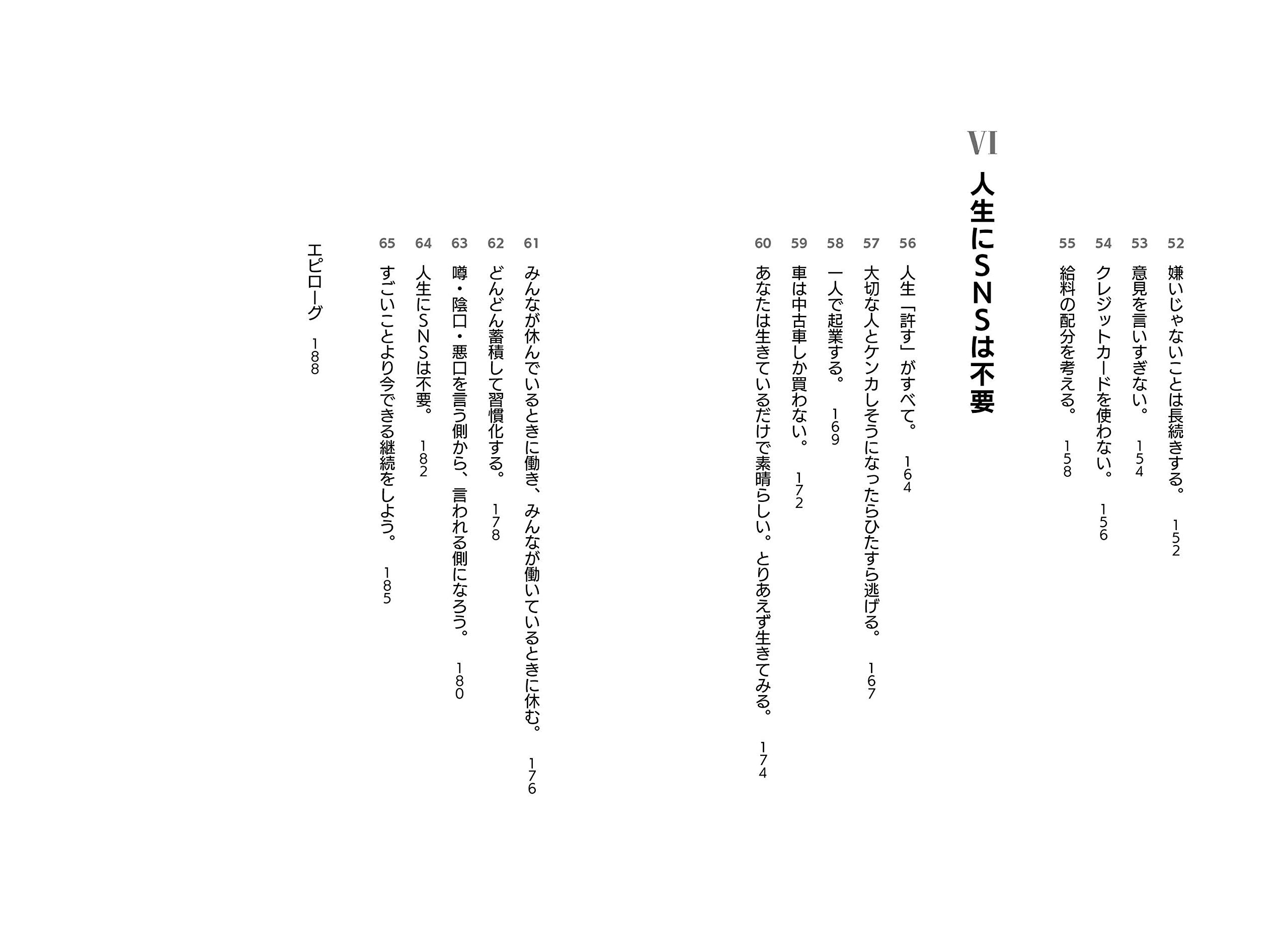 嫌なことや信念に反することをしない生き方を貫くことで気付いたさまざまな原則や習慣、信条を綴った箴言集です。