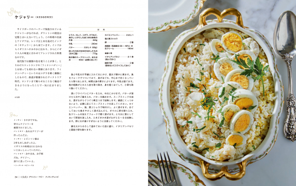 収録レシピは100以上にのぼり、貴族の食卓に並んだ朝食やアフタヌーンティーのケーキ、コースで提供された晩餐、ピクニックのサンドイッチ、使用人達が食べた親しみやすい料理、デザートなど、幅広く紹介します。