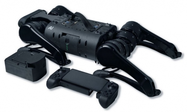 ロボット自体の大きさは、中型犬程度の大きさで、本体重量も12kg程度です。小型ながらその運動性能は非常に高く、可搭載重量5kg、平地の最大速度 11.8km/hの走行性能、バク転などもできる高い運動性能をUnitree社の自社開発の高性能モーターを搭載することで実現しています。