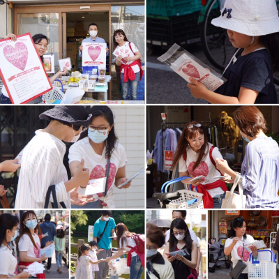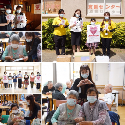 千葉県君津市の介護施設や支援センターをはじめ、地域に貢献している飲食店などのほか、宇野美香子の出身地である東京・戸越の神社や全国的に有名な商店街・戸越銀座を中心にマスクの配布を無料・無償にて展開しました。