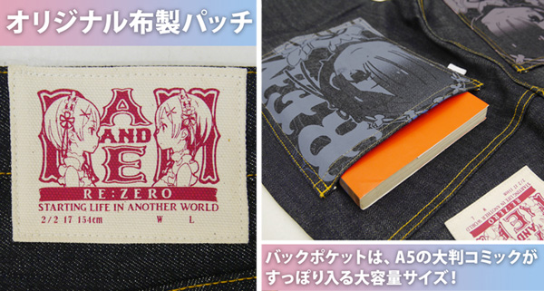 双子のレムとラムがバックポケットの左右にデザインされた数量100本限定のジーンズが発売決定です。