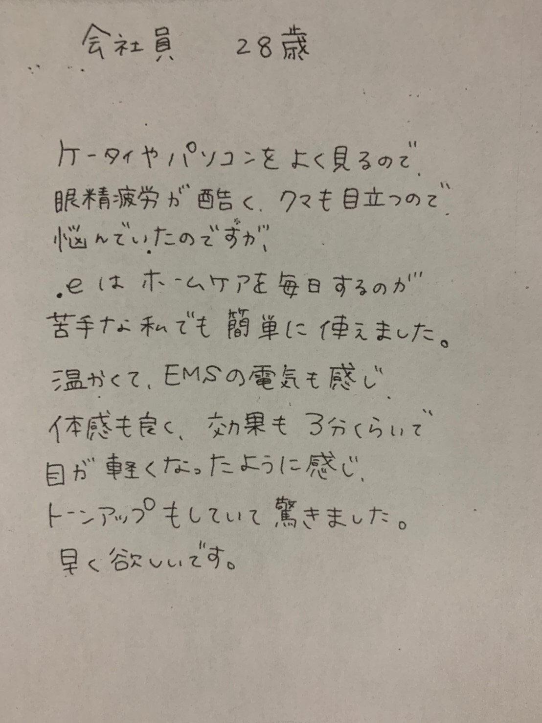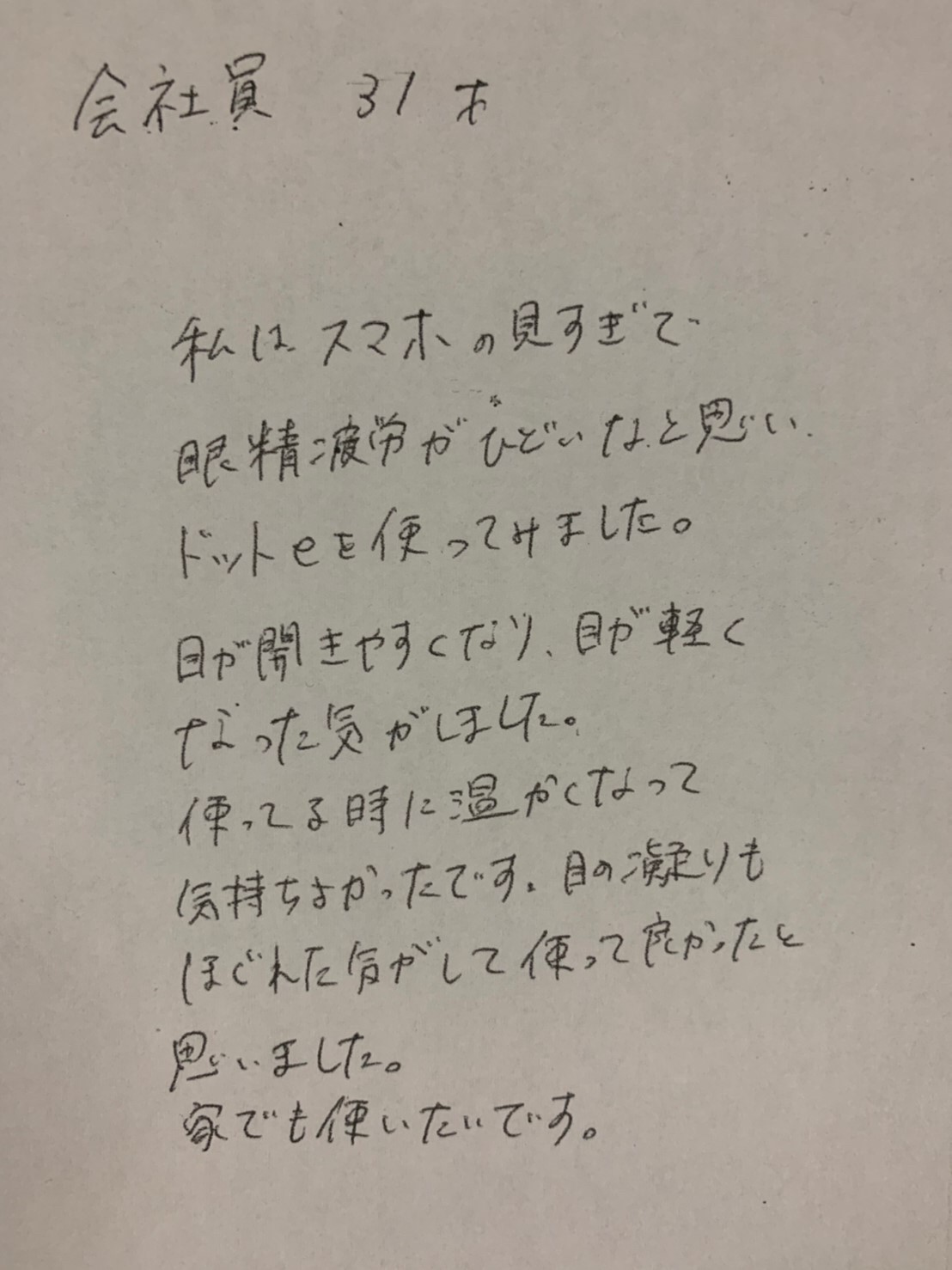 【目元専用美眼器『ドットイー(R)』お試し利用者の感想】