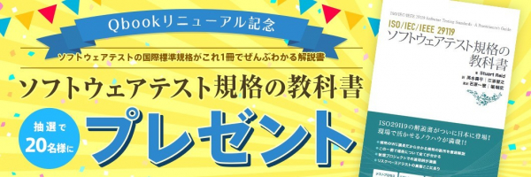 ソフトウェアのテスト・品質向上支援に関するサービスを提供するバルテス株式会社(本社:大阪市西区、東京都千代田区 代表取締役社長:田中 真史、以下当社)は、当社が運営するソフトウェア品質向上プラットフォーム『Qbook(キューブック)』のリニューアルを記念し、5月29日(金)より発売を開始した『ISO/IEC/IEEE29119 ソフトウェアテスト規格の教科書』が抽選で20名様に当たるプレゼントキャンペーンを本日より開始しました。
