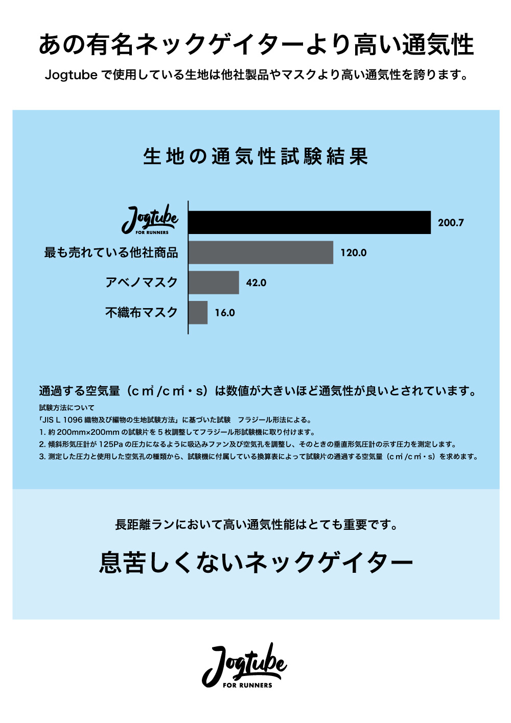 アパレル全般へのプリントを行う株式会社エー・ディー・ピー(本社:東京都墨田区 代表取締役:三ッ井清明)は、ランナー向けに通気性に優れ、ずり落ちないストッパー機構を備えたマスク、Jogtube(ジョグチューブ)200デザインを2020年6月15日(月)に発売します。販売は自社通販サイトのみ、オリジナルプリントにも5本から対応します。