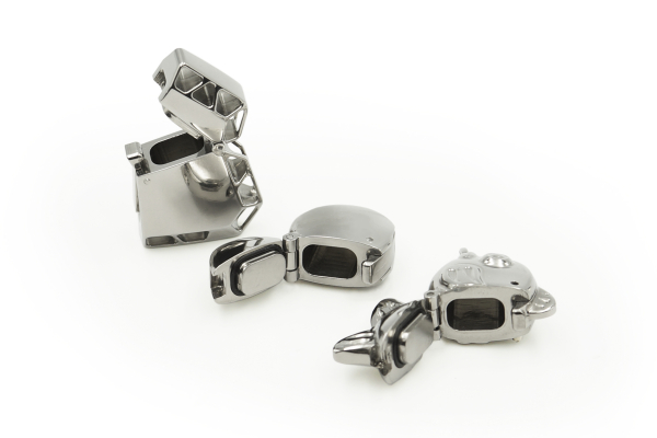 ニトロなどの錠剤を常に身に着けることを想定し、素材には人工関節など医療の分野でも使用されるアレルギーフリーの金属として名高いチタニウムを使用。汗などの水分の侵入を防ぐ防水構造。錠剤のパッケージの両端を折って1錠入れることができます。緻密な削り出し加工で製造し、研磨や組み込みは手仕上げです。腕時計のデザインがスタートで、緻密なプロダクトを得意とする弊社ならではの製品です。