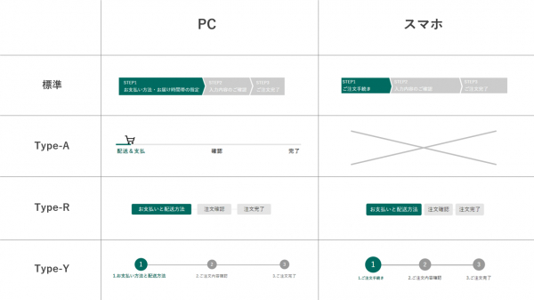 商品をカゴに入れてから購入完了にいたるまでの購入ステップの画像をモール風に設定することが可能です。※色変更も可能です。