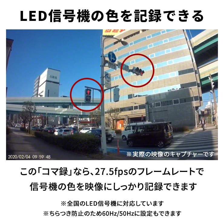 ・全国のLED信号機に対応、フレームレート27.5fpsで信号機の色もしっかり記録