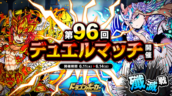 株式会社アソビズム(本社:東京都千代田区、代表取締役:大手智之)は、App Store・Google Playにて好評配信中のリアルタイム合体カードバトル『ドラゴンポーカー』で、2020年6月11日(木)より「第96回デュエルマッチ本戦」を開催いたします。