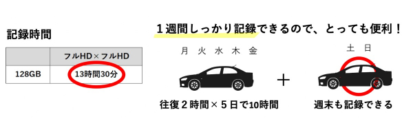 ポイント(2) 1週間分の運転をしっかり記録できる!大容量128GB