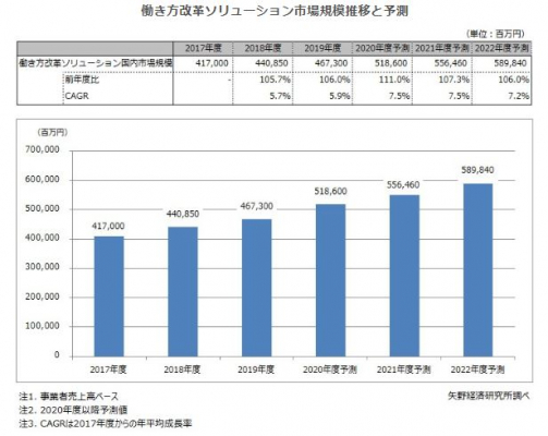 株式会社矢野経済研究所(代表取締役社長:水越孝)は、国内の働き方改革ソリューション市場を調査し、主要7領域における製品カテゴリー別の動向、参入企業の動向、将来展望を明らかにいたしました。