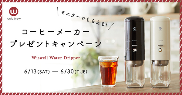 テックウインド株式会社(本社:東京都文京区、代表取締役社長:王 夢周、以下 テックウインド)は、キッチン用品ブランドWiswell(ウィズウェル)のコーヒーメーカープレゼントキャンペーン(以下 本キャンペーン)を2020年6月13日(土)から開始いたします。ぜひ、この機会にご自宅で水出しコーヒーをお楽しみください!