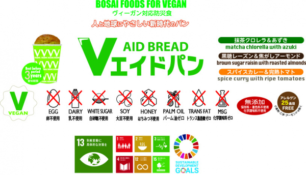 東京ファインフーズ株式会社(本社:東京都中央区 代表取締役社長:天満 隆)は、世界初のヴィーガン対応防災パン「Vエイドパン」を、2020年6月末日から発売します。