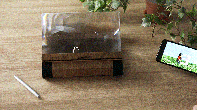 ・スマートフォンを置くだけで、小さな画面がおよそ12インチの大画面に変身する拡大鏡