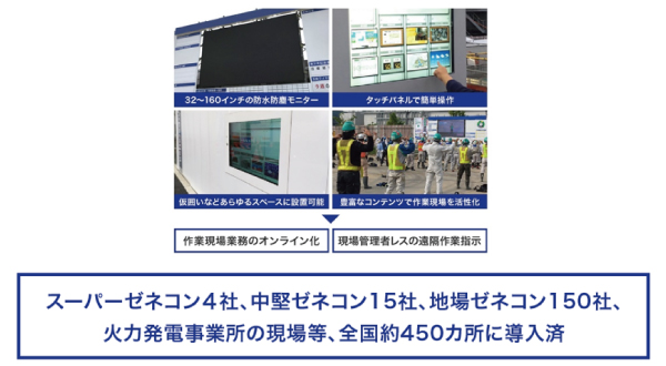 作業現場向けクラウド型タッチパネルモニターや、“遠隔指示”モニターによって、作業現場の業務を完全オンライン化へと導く