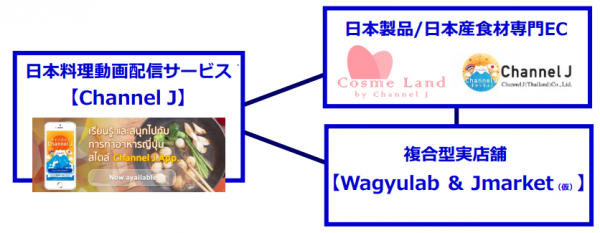 今後は、日本料理動画メディア『Channel J(チャンネルジェイ)』に続き、日本製品や日本産食材専門の自社EC「Channel J(動画配信サービスと同名)」や「Cosme Land(https://cosmelandshop.com/)」の展開及び現地ECモール「LAZADA(https://www.lazada.co.th/shop/Channel-J-Food)」や「Shopee」などの出店、そして「レストラン」「カフェバー」「物販」の複合型実店舗【Wagyulab & J Market(仮)】の展開を予定しています。