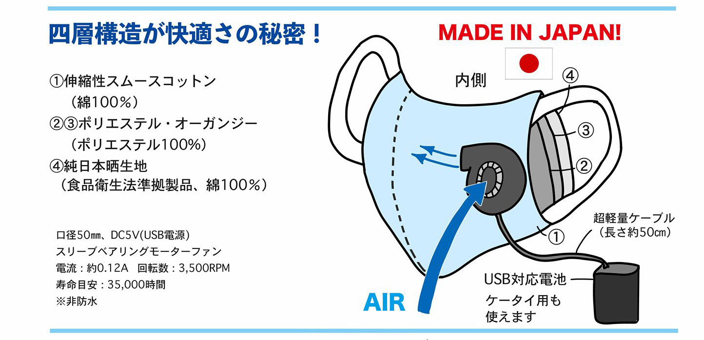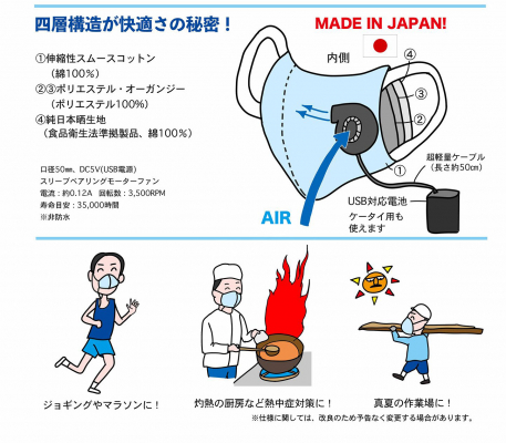 空調機能付きな布マスク:息ラクマスク「アクティブクール」を開発・製造・発売。