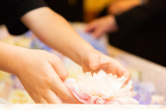 花葬儀は「100人いれば100通りのお葬式をコンセプト」に、2002年にオーダーメイドで洋花を使った花祭壇を開発しました。それまでは白木祭壇と菊の花が主流でしたが、私たちの花へのこだわりが今では業界のスタンダードとなりつつあります。花だけでなく、亡くなられた方が好きだった料理を用意したり、想いをカタチにするご家族へのサプライズなど、形式に捉われないオーダーメイドの葬儀を追求し、業界に新たなサービスを創出しました。