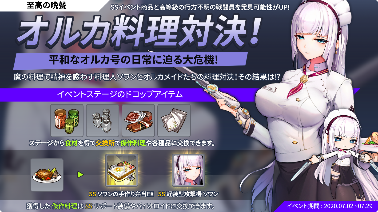 イベントアイテムを集めて、SS級軽装型攻撃機「ソワン」(CV:原由実)や「ソワンの手作り弁当EX(SSランク補助装備)」をGETしよう!