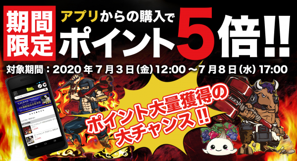 ◇キャンペーン内容:ビーレジェンドアプリのショッピング項目から購入するとポイント5倍!