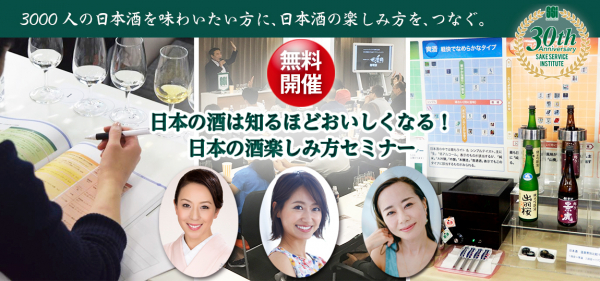 日本酒サービス研究会・酒匠研究会連合会(東京都文京区、以下「SSI」)は、2021年2月で設立30年を迎えます。そこで2020年から2021年にかけ、SSIでは「日本の酒を わたしは、つなぐ。」をキャッチコピーとし、多くの30周年記念事業を実施してまいります。消費者向けセミナーとして、「日本の酒は楽しい!」をテーマに 日本酒の魅力を消費者のみなさまによりお楽しみいただくことを目的に実施している日本酒ナビゲーター認定セミナー等を全国各地で開催いたします。本事業に賛同いただいた世界中の日本酒学講師にご協力をいただきながら、3,000名の参加を目標に多数開催予定です。