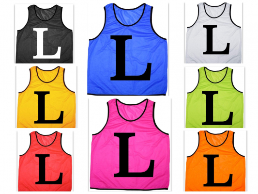 どんな天候でも見やすい色。Lという文字を見やすい大きさで前後にプリント。バレーボールはもちろん、サッカー、フットサル、イベント、運動会、スポーツ大会、マラソン大会、数々のシーンでチーム分けに大活躍。着脱しやすいデザイン。