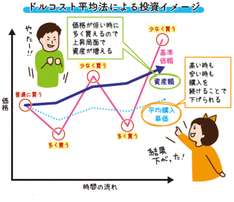 これは、毎月一定額を積み立てることで平均購入単価を下げられるというものです。