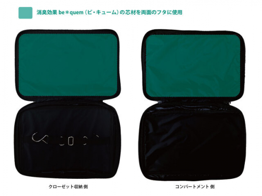 (3) 消臭効果繊維素材be*quem(ビ・キューム)使用。嫌な臭いから衣類を守る。