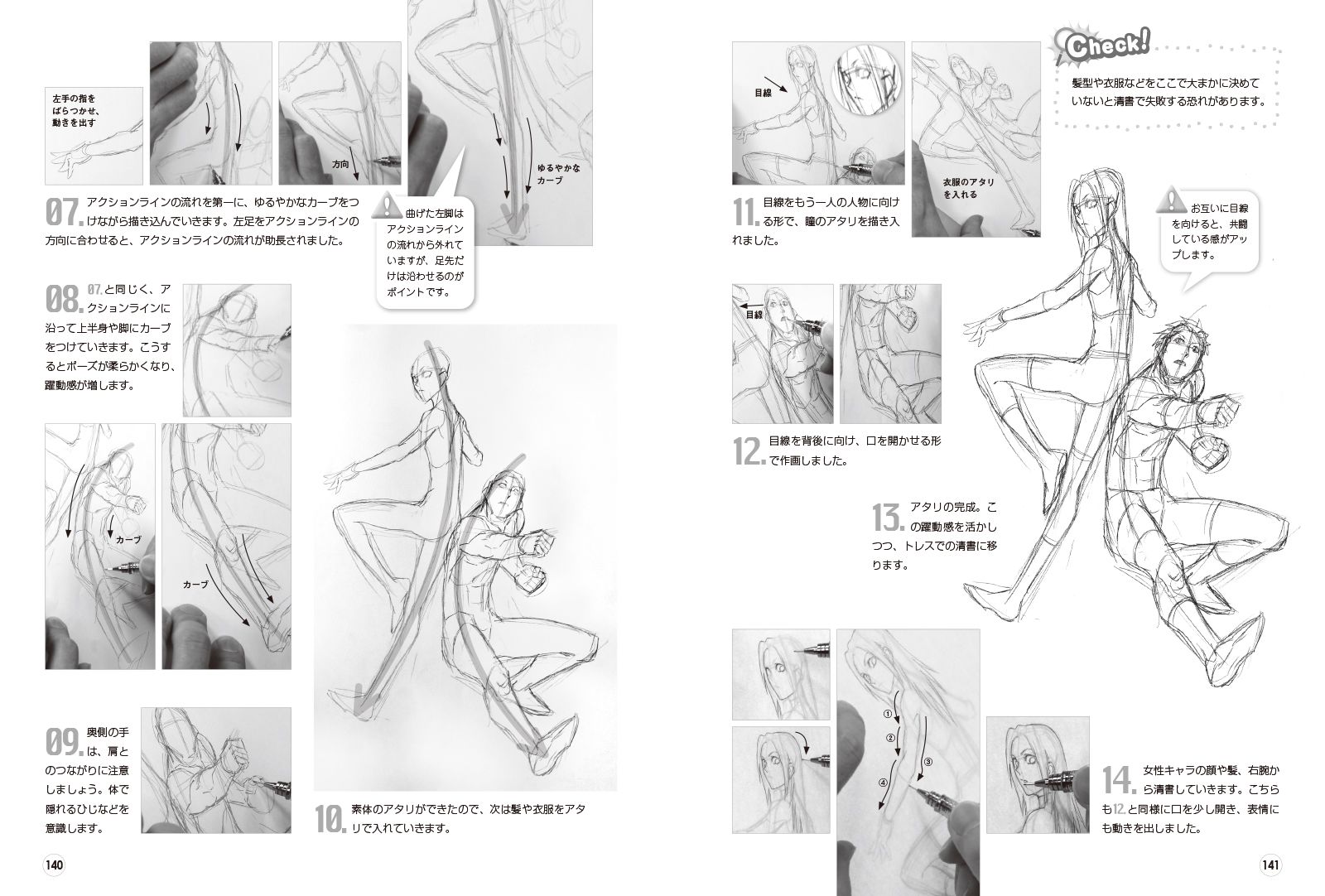 そこで本書は、第一線のアーティストや著名アニメスタジオがキャラクター表現に用いる技法「アクションライン」について解説。アクションラインを活かして、キャラクターにイキイキとした動きを加えていく方法を伝授します。
