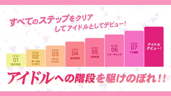 ステップをすべて無料で受ける事ができます。ステップ6までクリアしたアイドルの原石は、「アイドルどっとカンパニー」に