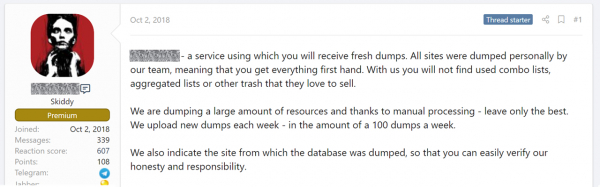 画像:流出DBaaSの主要プロバイダーが、サイバー犯罪のアンダーグラウンドフォーラムに掲載した投稿